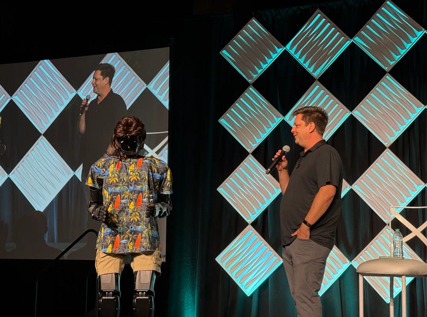 Detroit was abuzz with the Reindustrialize defense fest this weekend, with Palmer Lucky of Anduril bullish about opportunities to make computers in the US again. Palmer addressed the crowd via a robot from Foundation, a San Francisco based humanoid robotics company.